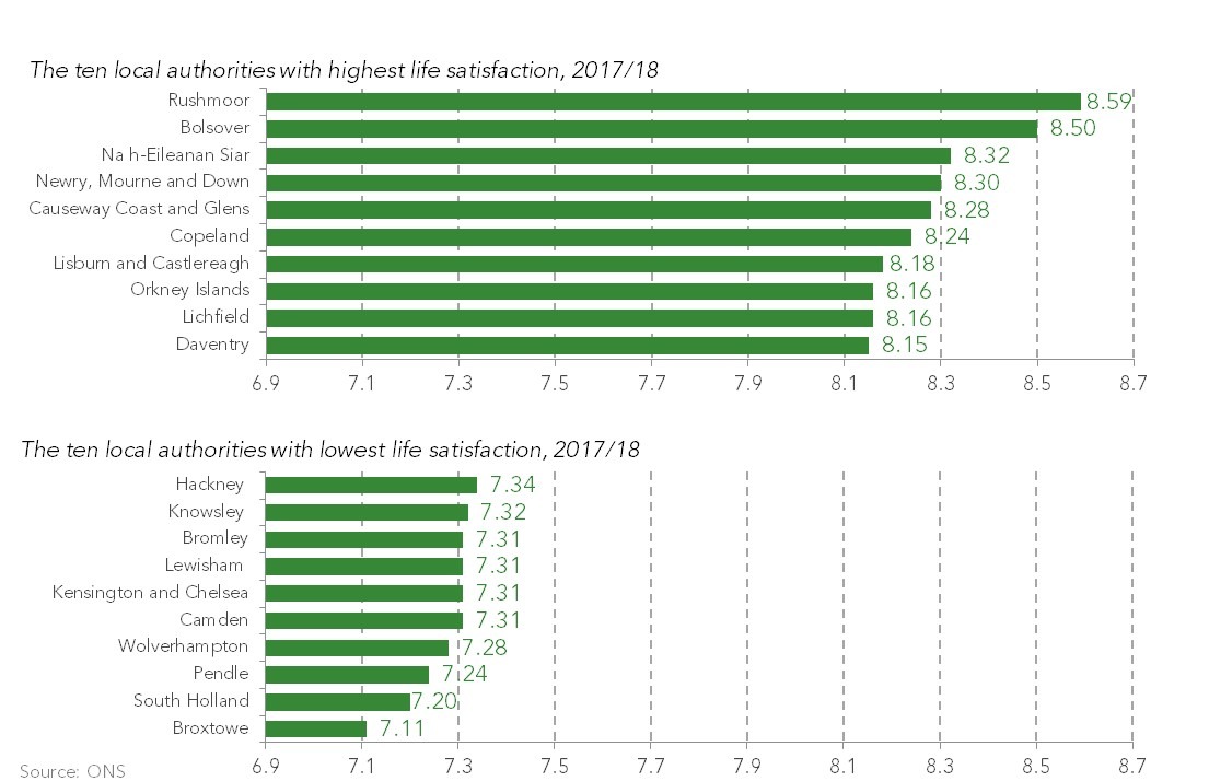 Living standards Did you feel happy yesterday? Broadening the measurement of living standards 26 September 2018 by George Bangham George Bangham Today the ONS released their latest statistics on well-being in the UK, as they have done since 2011. These stats have their sceptics, both over the maths involved and over the very idea you can measure happiness over time (let alone orient policy towards it). But they matter: self-assessed well-being gives us an insight into how people judge their own living standards, and it adds an angle that can be missed if living standards are tracked by income measures alone. The subjective well-being movement has taken off in the past 20 years as more and more social scientists recognised that GDP alone isn’t enough to track how economic change affects normal people. In the aftermath of the financial crisis several governments started investigating how a broader range of economic and psychological factors could be used to measure living standards. Over the past decade the Resolution Foundation has played its part in this movement by charting the consequences of the financial crisis for living standards as measured – in our headline publications – by growth in median household incomes after housing costs, inflation-adjusted. Recently we’ve been looking in more detail at the Office for National Statistics’ data on subjective-well-being, which they’ve collected since April 2011. The data comes from the Annual Population Survey, one of the ONS’s biggest household surveys, via four questions which ask people how satisfied they are with their lives nowadays, how worthwhile they feel the things in their life to be, and how happy and anxious they felt yesterday. People’s responses to the four questions suggest a largely positive story – despite a limp recovery in incomes (real weekly wages remain £12 per week below their pre-crisis peak), people seem to be getting happier and more satisfied with their lives. Average happiness, for example, rose from 7.29 in 2011-12 to 7.52 in 2017-18, with 10 being the highest possible score (and 0 the lowest). This is an important extra dimension in the measurement of living standards, and it isn’t immediately clear why well-being might have risen at such a pace. What could be going on? The ONS have considered a wide range of other factors that might contribute to self-reported well-being. They’ve looked at health, physical activity, education and crime, access to services and community cohesion, to name but a few. No doubt these all have roles to play, in varying proportions around the country. Importantly, well-being research usually finds that individuals feel worse if they become unemployed, but our work so far suggests that the well-being increases shown above are not primarily a result of today’s 40-year record high employment levels or other bounce-back from the recession. There’s a further puzzle (at least for economists) when we look at the regional statistics on well-being. Northern Ireland has been consistently the happiest region in the ONS statistics, despite being one of the poorer parts of the UK and its labour market performing relatively badly in the years since the financial crisis. If we look at a smaller scale, we see that the local authorities with the highest life satisfaction include Rushmoor, Bolsover, the far North of Scotland and parts of Northern Ireland, while the least satisfied places include parts of London that might be considered among the most economically prosperous areas of the UK. In short, there isn’t an obvious reason that jumps out as to why the British population are telling statisticians they’re getting happier, and more work needs to be done here. But well-being statistics are a good reality check for researchers like ourselves who spend our time chronicling the nation’s living standards. We’re hoping to shed more light on these questions in future work.