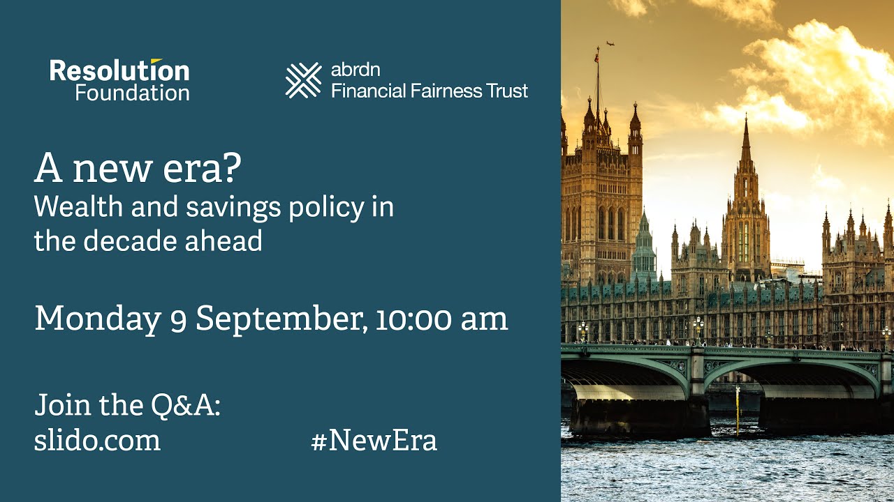Register to attend in person or to receive access link for online viewers. Britain’s economy has been reshaped by 16 years of weak growth and stagnating incomes, and by a four-decade wealth boom that has only just been tempered by the recent rise in interest rates. This wealth boom – which has not been shared equally throughout the country or across generations – has had a profound impact on people’s lifetime living standards, their ability to weather financial shocks, and the prospects of younger generations. The drivers and consequences of this wealth boom are poorly understood, but they hold the key to building an integrated savings and wealth policy in the decade ahead How might Britain’s wealth boom evolve over the coming decade? Why hasn’t it boosted household’s financial resilience, and what can be done to change that? How might we strengthen pension saving to improve living standards in later life? Can we do a better job of taxing wealth given the fiscal pressures Britain faces? What difference might higher interest rates make? Should the new Labour government chart a new course on wealth-related policies and, if so, how? The Resolution Foundation is hosting a major conference as part of its ongoing wealth programme of work, in partnership with abrdn Financial Fairness Trust, to debate and answer these questions. We will hear from leading experts across academia, politics, policy, civil society, journalism and business to get a better understanding of the big issues and policy questions that surround the wealth of our nation. The event will be open for people to physically attend, alongside being broadcast via YouTube and the Resolution Foundation website. Viewers will be able to submit questions to the panel before and during the event via Slido. Agenda 10.00 – 10.05 Welcome 10.05 – 11.15 Piketty 10 years on 11.15 – 11.35 Coffee break 11.35 – 12.30 Household resilience 12.30 – 13.20 Lunch 13.20 – 14.20 Pensions – where next? 14.20 – 14.40 Coffee break 14.40 – 15.40 Wealth taxation width="560" height="315" frameborder="0" allowfullscreen="allowfullscreen"> width="476" height="400" frameborder="0" marginwidth="0" marginheight="0" scrolling="no">