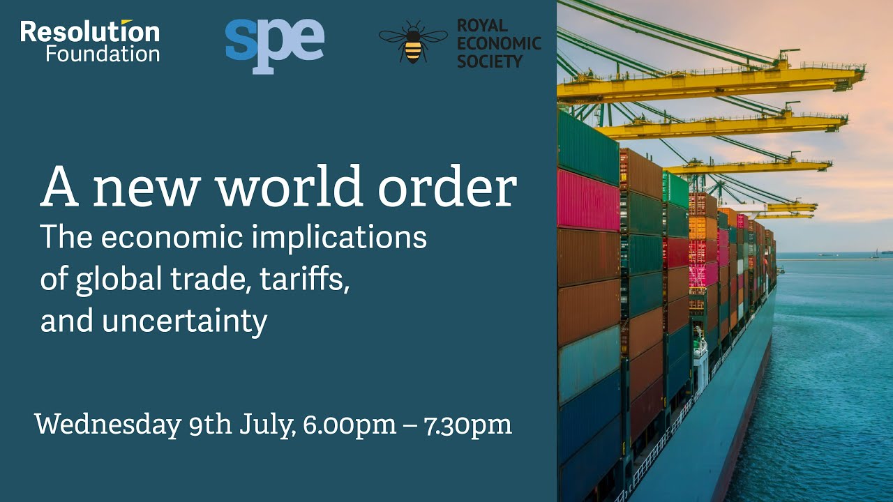 width="560" height="315" frameborder="0" allowfullscreen="allowfullscreen"> On the evening of Wednesday 9th July, join us for a timely discussion exploring the profound transformation of global trade, amid rising tariffs and mounting geopolitical tensions. What are the broader economic implications for the UK, US and wider global landscape? The discussion will be chaired by Chaired by the Rt Hon Lord David Willetts, joined by an expert panel; Professor Meredith Crowley, Russell Napier and Sherman Robinson. Brought to you by the Resolution Foundation, Society of Professional Economists and Royal Economic Society and hosted at the Resolution Foundation office, with refreshments from 5.30pm. width="476" height="400" frameborder="0" marginwidth="0" marginheight="0" scrolling="no">