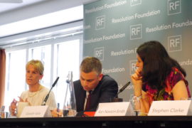 Joint Resolution Foundation and CBI Labour Market Conference Britain’s labour market is at a crossroads, with Brexit, globalisation and the march of technology set to fundamentally change the world of work over the coming years. Planning for these changes should be top of the new government and British businesses’ to do list. What will Brexit really mean for native and migrant workers, and the firms that employ them? Should we be concerned about the growing gig economy and the rise of the robots? Does the National Living Wage mean the era of cheap labour is coming to an end? The Resolution Foundation and the CBI jointly hosted a half-day conference in Westminster with leading employers, economists and policy makers to discuss the big labour market issues facing Britain and how to shape its post-Brexit future. Where are we starting from? The changing state of the UK Labour Market Neil Carberry, Director for People and Skills, CBI Helen Dickinson OBE, Chief Executive, British Retail Consortium Paul Gregg, Professor of Economic and Social Policy, University of Bath Alan Manning, Professor of Economics, London School of Economics Torsten Bell, Director, Resolution Foundation width="100%" height="100" frameborder="0" scrolling="no" data-link="https://www.podbean.com/media/player/d46qh-6bd7ef?from=yiiadmin" data-name="pb-iframe-player"> Addressing people’s concerns: how should the world of work change? Kate Bell, Head of the Economic and Social Affairs Department, TUC Sir David Metcalf, Director of Labour Market Enforcement Lindsay Judge, Senior Analyst, Resolution Foundation Matthew Taylor, Chair of the Taylor Review into Modern Employment Practices David Willetts, Executive Chair, Resolution Foundation width="100%" height="100" frameborder="0" scrolling="no" data-name="pb-iframe-player"> The consequences of Brexit: adjusting to a post-EU labour market Minette Batters, Deputy President, National Farmers’ Union Stephen Clarke, Research and Policy Analyst, Resolution Foundation Rain Newton-Smith, Chief Economist, CBI Jonathan Wadsworth, Senior Research Fellow at the Centre for Economic Performance, LSE Gareth Vale, Marketing Director at Manpower Group width="100%" height="100" frameborder="0" scrolling="no" data-name="pb-iframe-player"> width="595" height="485" frameborder="0" marginwidth="0" marginheight="0" scrolling="no" allowfullscreen="allowfullscreen">