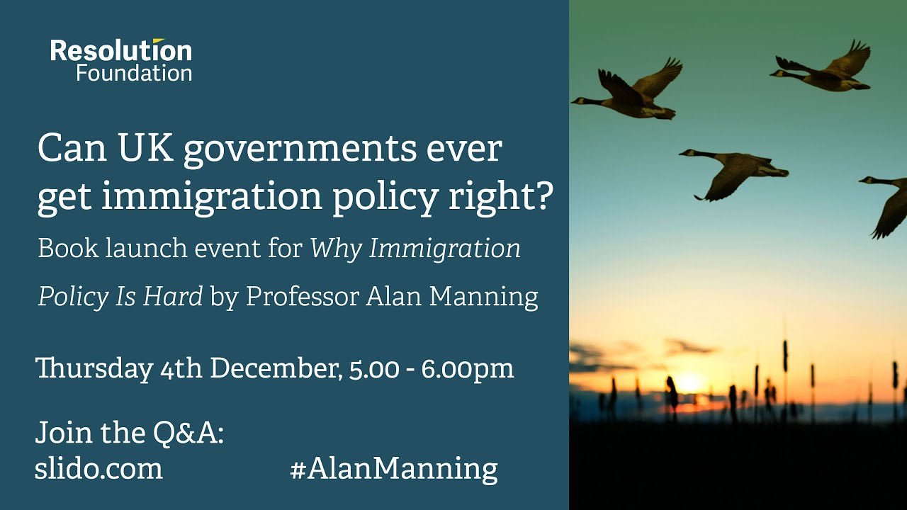 width="560" height="315" frameborder="0" allowfullscreen="allowfullscreen"> Immigration is one of the most salient and polarised issues among the British public – and one that successive Government policy initiatives have failed to resolve. Now central to the UK’s political debate, the issue regularly makes headlines and is used as a device by parties to win public opinion. Seen by some as a missing part of the UK’s growth strategy, and by others as having gone too far, any discussions are often binary and divisive. And while politicians recognise the need to get immigration policy right; they continue to be torn over what strategy is best, let alone how to deliver it. In his latest book Why Immigration Policy Is Hard, Professor of Economics at the LSE and former Chair of the Migration Advisory Committee Alan Manning makes the case that while immigration policy will never satisfy everyone, that doesn’t mean it can’t be (and needs to be) done much better. Using cutting-edge international research, Alan seeks to inform debate by first building a picture of migration across the world, then assessing the issue from both the migrant and receiving countries’ perspective. Alan then assesses options for policy design, pushing for decisions to be made even where there are difficult trade-offs. The Resolution Foundation is hosting an in-person and interactive webinar to debate and answer the questions posed by Alan’s latest book. He will be joined by Chief Executive of the Resolution Foundation Ruth Curtice to navigate key questions on the effect of immigration on people’s lives, and how this should impact the setting of policy. The event will be open for people to physically attend, with refreshments before the event from 4.30pm, alongside being broadcast via YouTube and the Resolution Foundation website. Viewers will be able to submit questions to the panel before and during the event via Slido.