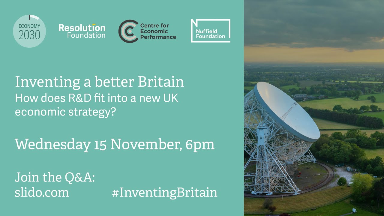 Low productivity is the foundational cause of Britain’s recent economic malaise, and raising it is a top priority for policy makers. Public and private investment in research and development is a key route to boosting productivity and future economic growth. But businesses often complain that policy makers are failing to create an environment that encourages private investment. After the ONS revision how much are we now spending on R&D? How does our recent performance compare with other advanced economies? What barriers do we need to overcome to boost R&D spending? And how can it align it with a new economic strategy for the UK focused on boosting growth? The Resolution Foundation and the Foundation for Science and Technology are co-hosting an in-person and interactive webinar to debate and answer these questions, as part of the Nuffield Foundation-funded Economy 2030 Inquiry. We will hear from leading experts on how R&D currently fits in the UK’s economic plans, and where it might fit into a future economic strategy. The event will be open for people to physically attend, alongside being broadcast via YouTube and the Resolution Foundation website. Viewers will be able to submit questions to the panel before and during the event via Slido. width="560" height="315" frameborder="0" allowfullscreen="allowfullscreen"> width="476" height="400" frameborder="0" marginwidth="0" marginheight="0" scrolling="no">