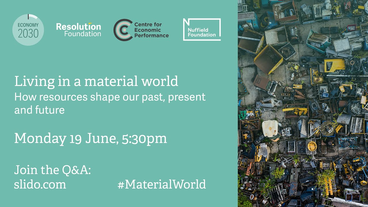 Materials matter. They have been critical in shaping the path of human history, from the innovations we create to the relationships between nations. This has always been true from iron in the 19th Century to lithium that powers our smartphones today. But changing international dynamics – driven by shifting geopolitics, the recent energy crisis and the net zero transition – have the potential to put access to materials at the forefront of economics, politics and international relations. In his new book – Material World: A Substantial Story of Our Past and Future – Ed Conway examines how six key substances have built our world, have the potential to transform our future, and the risks that reliance on these resources pose. To mark the launch of the book, the Resolution Foundation is hosting a book launch at its Westminster office, as part of The Economy 2030 Inquiry, funded by the Nuffield Foundation. The panel will discuss how we can balance our need for these resources with tackling climate change and managing geopolitical volatility. The event will be open for people to physically attend, alongside being broadcast via YouTube and the Resolution Foundation website. Viewers will be able to submit questions to the panel before and during the event via Slido. width="560" height="315" frameborder="0" allowfullscreen="allowfullscreen">