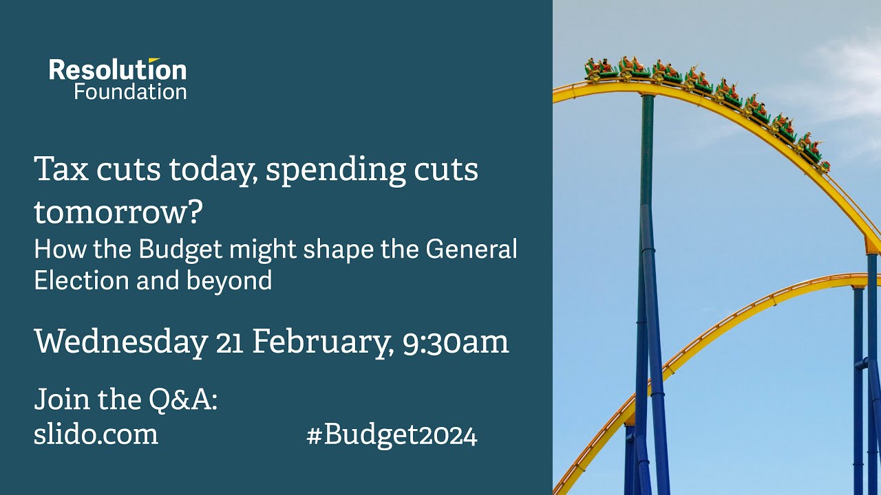 An election is coming, and therefore so are tax cuts in the Budget on 6th March. But the size of those tax cuts are dependent on the amount of fiscal room for manoeuvre the Chancellor has. And their shape will reflect where his political and economic priorities lie. Plus tax cuts come in a context of tax rises already announced, and spending cuts pencilled in for after the election. Has the economic outlook changed over recent months? How much fiscal wriggle room might the Chancellor get from the Office for Budget for Responsibility? Should the priority be announcing tax cuts, or scrapping planned spending cuts? And will Budget ’24 make the slightest bit of difference to the election to come? The Resolution Foundation is hosting an in-person and interactive webinar to debate and answer these questions. Following a presentation of the key highlights from the Foundation’s Budget preview, we will hear from leading experts on what’s likely to be in it and where that leaves the election, and the outlook for whoever has to govern after it. The event will be open for people to physically attend, alongside being broadcast via YouTube and the Resolution Foundation website. Viewers will be able to submit questions to the panel before and during the event via Slido. width="560" height="315" frameborder="0" allowfullscreen="allowfullscreen"> width="476" height="400" frameborder="0" marginwidth="0" marginheight="0" scrolling="no">