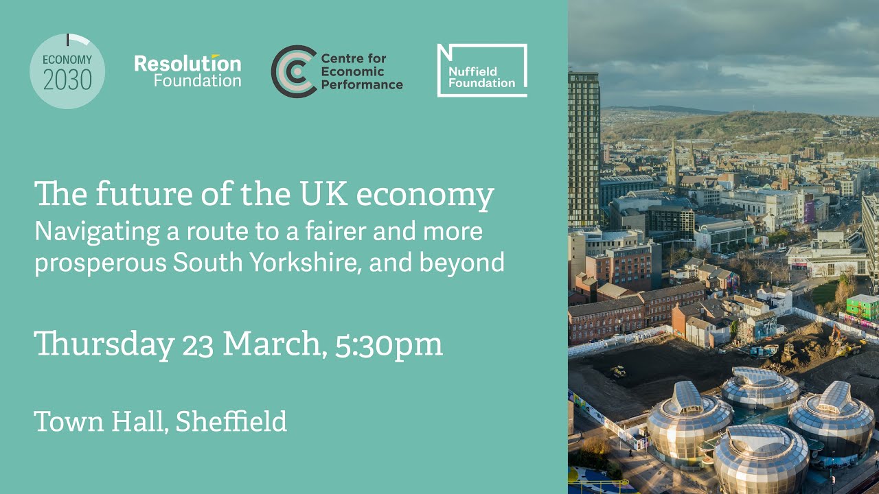 The United Kingdom is facing a decisive decade of huge economic change, from restructuring after Brexit and the pandemic, to urgently transitioning towards a net zero future, and adapting to technological shifts amid an ageing population. But it is doing that against a backdrop of low growth and high inequality, a toxic combination that leaves low- and middle-income households dangerously exposed to today’s cost of living crisis. South Yorkshire’s many strengths – including world-class universities in Sheffield and service sector firms across the region – must be harnessed to manage the economic changes of the 2020s well. But to really thrive, the region will need to find ways to ensure that everyone benefits from growth and investment. What role can economic strategies – national and local – play in responding to the challenges of the 2020s, to secure higher growth and lower inequality? How will the changes to come affect the jobs we do, the places we live and the businesses we work for? And what are the prospects for cities like Sheffield, regions like Yorkshire, and nations like Britain to be able to rise to these challenges? As part of the Economy 2030 Inquiry – in collaboration with the LSE and funded by the Nuffield Foundation – the Resolution Foundation is hosting this event in partnership with the Sheffield Political Economy Research Institute at the University of Sheffield to debate and answer these questions. Based on the research findings from the Inquiry so far, we will be joined by leading experts to discuss how different areas of the UK – particularly Sheffield and the wider South Yorkshire region – have responded to past periods of economic change, and how to make the coming decade of change a success. width="560" height="315" frameborder="0" allowfullscreen="allowfullscreen"> width="476" height="400" frameborder="0" marginwidth="0" marginheight="0" scrolling="no">