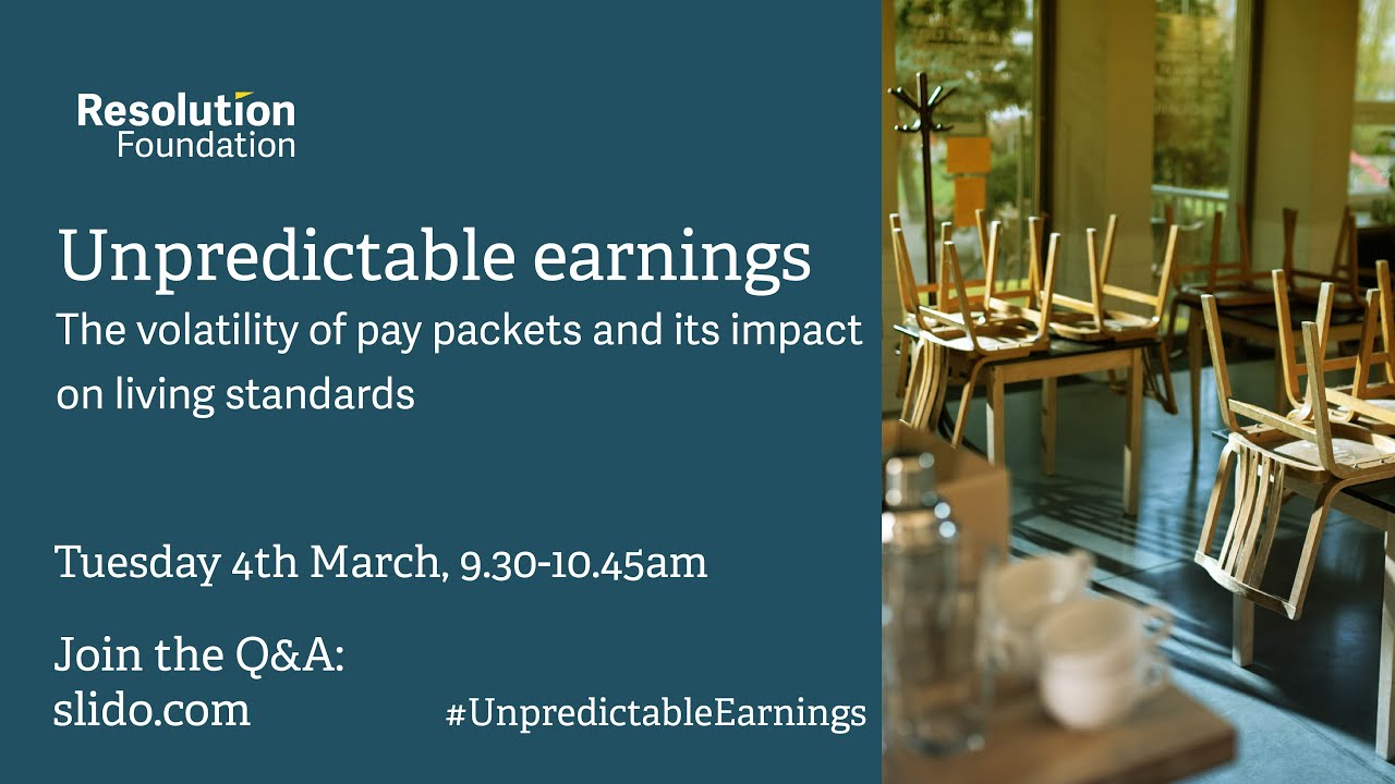 title="YouTube video player" frameborder="0" allow="accelerometer; autoplay; clipboard-write; encrypted-media; gyroscope; picture-in-picture; web-share" referrerpolicy="strict-origin-when-cross-origin" allowfullscreen> Most people are used to receiving regular monthly pay cheques, hopefully with the occasional bonus and an annual rise. But while this is often taken for granted, for other workers the size and timing of their pay cheques are far more volatile – with knock on effects on their ability to pay bills, save, plan ahead and smooth their living standards over time. But with Brits notoriously adverse to talking about pay, the scale of earnings volatility across the country is unknown. How many workers are subject to volatile earnings, and how much does the timing and size vary from pay cheque to pay cheque? Who is most likely to experience earnings volatility, and in which industries is it most prevalent? What are the wider living standards consequences for families? And what can policy makers do to mitigate the impacts of unpredictable earnings? The Resolution Foundation is hosting an in-person and interactive webinar to debate and answer these questions. Following a presentation of groundbreaking new research on earnings volatility that examines data on hundreds of thousands of workers’ payslips, as recorded by HMRC, we will hear from leading experts on what this phenomenon means for people’s living standards, and how policy makers should respond. width="476" height="400" frameborder="0" marginwidth="0" marginheight="0" scrolling="no">