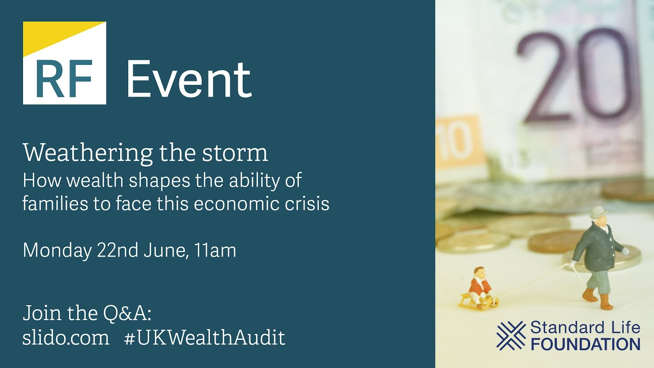 Individual wealth has grown significantly in recent decades, increasing from three- to nearly seven-times GDP since the 1980s. However, neither policy nor politics have kept pace with the scale of this change. The Resolution Foundation has joined the Standard Life Foundation to embark on the three-year project which audits wealth in the UK, helping us to better understand how this increase has occurred and what this means for families on low-to-middle incomes. As the country lives through an unprecedented economic crisis, who does and doesn’t have wealth to draw down on can make a huge difference to families’ current and future living standards. How was wealth distributed across households on the eve of the current crisis? How had the situation of low-wealth families changed in the run up to this pandemic? And what impact has this crisis had on family balance sheets – from savings levels to debt? The initial state of the nation audit will be published on 22 June. We are hosting an interactive webinar to discuss the role of wealth in how families are navigating the coronavirus crisis. Speakers include former Chancellor and Chair of Standard Life Foundation, Alistair Darling. Viewers will be able to submit questions to the panel before and during the event. In partnership with