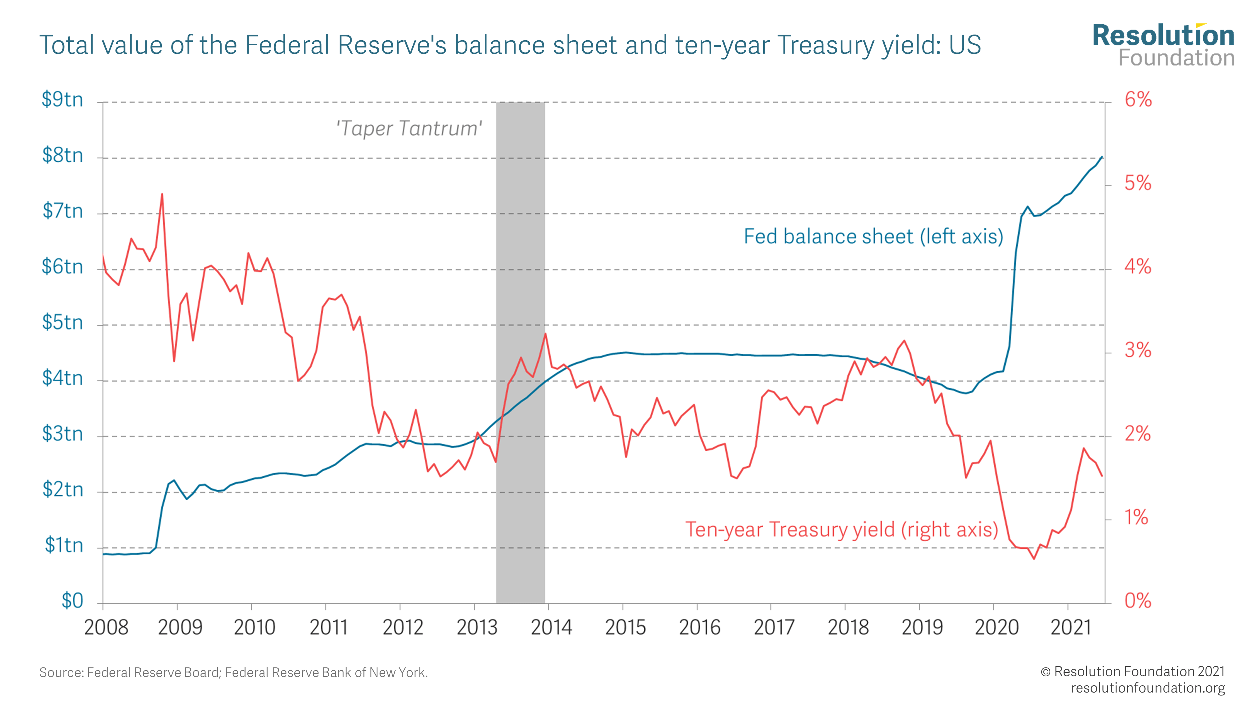 Macroeconomic policy Macroeconomic Policy Outlook Q3 2021 2 August 2021 Jack Leslie James Smith With the economic outlook improving, there has been much debate about when the Bank of England should start tightening policy. But the Bank also faces a key decision about how to tighten. This is important because a successful strategy for withdrawing support is key to delivering a strong recovery. So in this edition of our regular ‘Macro Policy Outlook’ we focus on how the Bank should tighten, and how that should be coordinated with fiscal policy. Here there are two key questions. First, what is the right tool for active tightening – policy rates or reducing Quantitative Easing? And second, should that tightening come before or after fiscal tightening? On the first question, historically the Bank has said it would tighten by first raising its policy rate to around 1.5 per cent, and then do further tightening by unwinding QE (i.e. selling assets). But, since the arrival of Andrew Bailey, it has become clear that the Bank are revisiting that strategy, with the new Governor dropping heavy hints that he would like to see asset sales begin long before interest rates return to 1.5 per cent. Our view is that revising the Bank’s approach to tightening is desirable and should include earlier asset sales than previously envisaged. A renewed approach however should combine a gradual and predictable asset sales programme with clarity that changes in policy rates are the key marginal tool for tightening policy. This is because the impact of policy rates is less uncertain and more nimble if circumstances change. Large short-term changes in asset sales also risk undermining the crucial role that the Bank is playing in supporting fiscal policy. Given these sales would be designed to impart little or no discernible tightening, they should start before rate rises, but only when it is clear that a sustained recovery is in progress. The second question is important because the Chancellor has already made it clear that he also has an eye on tightening policy. Coordination is crucial in order to avoid withdrawing collective support too quickly as happened in the aftermath of the financial crisis. Prior to that crisis, fiscal policy tended to tighten before monetary policy; safe in the knowledge that rate cuts could be used to respond if needed. But with policy rates mired at the lower bound, it is important that monetary policy tightens first, building policy space in case the outlook worsens. With a recovery from the Covid-19 crisis seemingly well under way, attention has shifted towards tightening macroeconomic policy. These flames have been fanned by rising inflation and recent hints that some on the Bank of England’s Monetary Policy Committee (MPC) may be close to following Andy Haldane in voting to curtail Quantitative Easing (QE). So, is the time right for the Bank to start tightening? As we have set out in our previous work, the obvious answer is ‘no’. Here our analysis points to the rise in inflation proving temporary, and the labour market recovery still having much further to run. On top of that, the Delta variant seems to have led the recovery to slow down. But there is a second question that has received less attention than when monetary policy tightening should take place: how it should be implemented. That question is the focus of this edition of our regular Macro Policy Outlook, along with how tightening should be coordinated with fiscal policy. These are important issues because a successful exit strategy will be key in delivering a strong recovery and building policy space ahead of the next downturn. The Bank’s choice of how to tighten boils down to a decision about which of its main policy tools should be used for active tightening The key choice facing the Bank in deciding its approach to tightening is how it should use (and crucially sequence) its two main policy levers: raising its main policy rate (Bank Rate) and reducing the stock of assets built up via QE. Historically, the Bank’s answer to this has been that it will raise rates first before selling assets. Back when Mervyn King was Governor, the Bank committed to raising Bank Rate until it reached a level from which it could be ‘cut materially’ and then sell assets (referred to as Quantitative Tightening, or QT). Under Mark Carney, this approach was refined, and the threshold for selling assets was defined as Bank Rate at ‘around 1.5 per cent’. But under Andrew Bailey the thinking appears to have changed radically. The Governor is on record as saying he thought that “it may be better to consider adjusting the level of [QE] first without waiting to raise interest rates on a sustained basis”. This has prompted a review of this approach by Bank of England staff (see the final page of February’s MPC minutes) which is set to report back imminently. So below we weigh up the arguments for moving towards tightening through QT. There is a strong case for selling assets Andrew Bailey’s apparent discomfort with the amount of QE is not hard to understand. The expansion in the Bank’s balance sheet has been massive – with an £895 billion in asset purchases since QE started in 2009. The policy of waiting for significant rate rises before commencing asset sales has meant no progress in reducing that stock between the financial crisis ending and the pandemic arriving. As well as creating political pressure, QE can also increase the chances of financial instability, for example by pushing financial firms to take more risk. Partly reflecting these economic considerations, which should be front of mind for the Bank, there has also been increased political debate about the scale of QE. Buying up large swathes of government debt has led some to accuse the Bank of covertly funding the Government by printing money, an accusation not helped by the coincidence in the size of QE purchases and the increase in gilt issuance (Figu